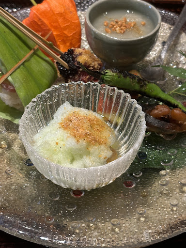 昨年末、京都の未在を訪問した際、非常に品数が多いお店なので、なんだか早く食べろと急かされている感じがして少し焦ったりしたものですが、石原氏は当然ながらこれ程の無礼な対応をすることは無く微笑んでいたし、今年に入って訪店した凌霄...