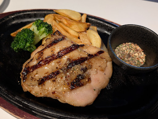 Read moreI was surprised that they serve halal steak I only asked for the food to be free from Alcohol/pork products, but then the waiters was mentioning “Halal” to the chef.. then they brought me a card with certificate of Halal strip loin steak from Australia I ended up eating the Salmon steak as I was in the mood for it 😆 It was delicious and took 5-7 min to prepare The butter sauce was great with the Salmon steak.
