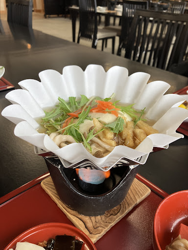 Read moreThis restaurant is located on the second floor of the hotel. Their hours are limited 11:30-2 pm and they only accept reservations for groups at this time. The vegetarian set I ordered was really delicious. There was a little hot pot with soft tofu and other veggies as well as several small side dishes and a soup. Everything tasted fresh and was well-seasoned. I was surprised by how full I was with this meal. The views from the restaurant are beautiful but it was quite foggy when we came. I still loved how serene it felt being on the mountain.