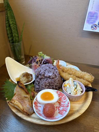 サラダやスープ、黒米などもついて、 健康的でバランスが取れたワンプレート😌🌱