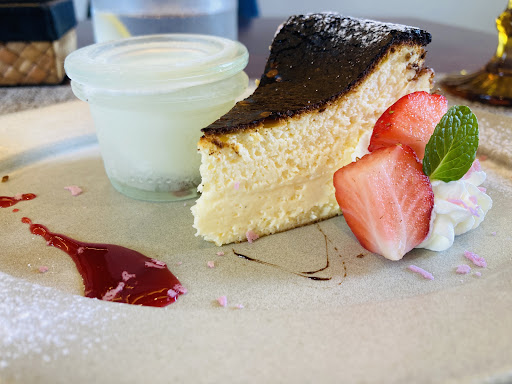 lunchメニューB. *前菜盛合わせ *季節のスープ *サラダ *滋賀県産雑穀ごはんor一心堂さんのパン *メインディッシュ ※揚げ鶏のハニーマスタードソース ※真鯛のカダイフ巻きフリット ジェノベーゼソース *デザート ※バスク風チーズケーキ *ドリンク