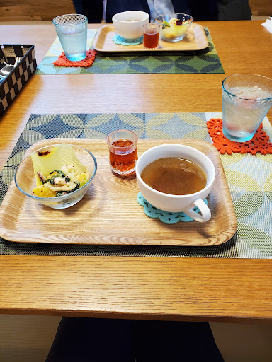 å ¥å£ã¯äžè»å®¶ãã®ãã®ã§ãããæž©ãã¿ã®ããå ¥ãã§äžã¯ããããªã·ã£ã¬ã§ãŠããŠãããæ°æã¡ã§é£äºãã§ããŸããïŒé£äºã¯ãéæçãéžã³ãŸãããæµ·å€ã®é£æã䜿ãããŠããŠãè ¹ãæºè¶³ã§ã¬ã¢ã³ããããã§ãã£ã±ããšããåŸå³ã§çŸå³ããã£ãã§ããæãäžè¡ã£ãã®ã§ããå·è£œã®ãããããã¹ãŒãã§çŸå³ããããã ããŸãããã飯ã¯ãã¡éºŠå ¥ãã§ãè ¹ã®ãã¡ãè¯ãæé«ã§ããããã¶ãŒãã®ããªã³ã¯ã«ã©ã¡ã«ãã»ãèŠã§æ¬æ Œçã§ããã©ããŒã³ãºãå ¥ã£ãŠããŠæ¿åãªã®ã§ããã¹ã...