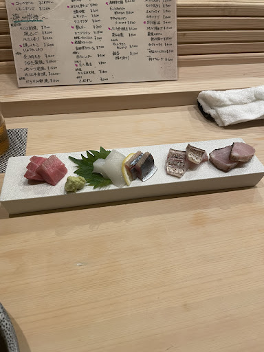 First, I'm an American tourist and lover of all things Japanese. Second, we sought out a traditional Japanese restaurant and found this unassuming sashimi spot based on an international foodie website. Third, we could not be happier. No, the prices are not a bargain, but if you want bargain sushi I can suggest the nearest supermarket or 7-11. The restaurant has two tables and perhaps 8 chairs around the chef's station. Perfect. No English menu. Even better. Omakase kudasai and we were off. Puffer fish. Yes. Chotoro. Absolutely. Baby cuttlefish fish sushi. Bring it on. All delicious. It's as if we were a prized guest in the young owners' home and my wife and I were honored to be there. Toddler and all. It was an immersive experience in Japanese dining with a young chef who actually cared two Americans speaking little Japanese crossed the threshold and put themselves in his hands. Honored and satisfied. This was...
