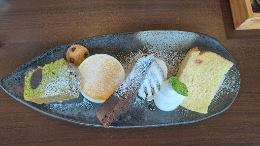 Read moreGW明けの平日、11:30頃に夫婦で訪問。石山寺近くのカフェ。 店横に3台分駐車場がありますが、手前に1台停まっていたので奥のスペースに入れるのは結構気を遣いました。運転苦手な方は手前が空いていないときは近くの石山寺参道無料駐車場に停めたほうが無難。 国道から側道に入って遊歩道みたいなところを奥に進むのでちょっと分かりにくいです。 店に入ると「ご予約のお客様ですか」と聞かれます。来店客の多くはweb予約のようで、幸い予約なしでもカウンターに座れましたが、休日は予約なしだと厳しそう。 食事は「9マスランチプレート」1800円のみ。独りで回している店のようでしたので仕方ないかと。プレートの他にドリンクとスープ(今回は酸辣湯)、立派なデザート盛り合わせが付きます。最初1800円は高いと思いましたが、内容を考えると妥当だと思います。 9マスは意外に炭水化物が多く、ご飯2種、サーモンミニバーガー、お餅の4マス。あとはお魚などのおかず。丁寧に作られた印象で、立派なデザートもあるのでお腹いっぱいになりました。 5月、6月は店主の方が検査・入院予定だそうで掲示がありました。特に6月は休業日が多いようなので来店前には事前に確認され...