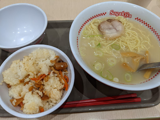 2023年8月 久々のスガキヤ。 値上がりしたとは言えこの値段でこのクオリティですよ。ラーメン安くて美味しい。390円ですよ390円。チャーシューも1枚入ってるよ。自分の感覚では、学生の時からずっと280円で値上げしていなくて有難かった。 ラーメンフォークの形が変わった時は衝撃を受けた。元々使いやすい形ではなかったけど、新しいラーメンフォークは器用貧乏な感じでスープを飲むのには使いやすくなったけど麺を食べるには使いやすさはさほど変わらないというか、ラーメンフォークで麺は食べにくい。ラーメンフォークが熱くなりすぎて唇やけどしそうになる。と、子供の頃何とかしてラーメンフォークでラーメンをイライラせずススッとスマートに食べることができないか?を色々試した結果諦めたことを思い出した。 それでもラーメンフォークが販売されたときは大小両方買ったんだけどね。ちなみに旧ラーメンフォーク(全く同じかどうかはちょっとわからないですが)は、今でも造っておられる業者さんがあって、アマゾンで買えました。 名古屋に行ったら高級版の店舗もあるんだけど、やっぱり普通のスガキヤが一番しっくりくるんですよ。 シンプルだけどあっさり懐かしい味。五目ご飯も味にムラがあるのがなんか家庭の味のようで良いよね。 職場の近くにスガキヤがあった時は、お昼ごはんでスガキヤまるごとミニセットを良く頼んでた。 ラーメンがミニになってしまうけど、サラダとソフトクリームがついているのが良くて、ソフトクリームは食後にもできるし、先にもらうこともできるのでラーメン待ってる間にソフトクリームを食べてしまうというジャンキーなこともできた。 夏場のざるラーメンはスタンダードで大盛りなのでお得感があるね。 最近新メニ...