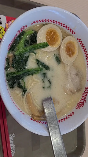 2025年1月 1年ぶり?のスガキヤ。 何か知らんメニュー増えてるな…濃いラーメンって何?ということで頼んでみる。 味玉と、ほうれん草が載ってる。 ていうか、ついにスガキヤもラーメン430円になったのね… 学生の時は280円だったし、10年ぐらい前東海地区にいたときは良くお世話になったぁ。 特にスガキヤまるごとミニセットにおせわねになった。あれ?セットはあまり値段変わらんのね? 濃いラーメン、200円高いやんって思ったんだけど味玉とほうれん草あるからラーメンに味玉とほうれん草トッピングと考えたら値段ほとんど変わらんのね。 味はなんというか、スガキヤって、いつものあれやねっていう味がやっぱり期待してるんでしょうね。個人的にはいつものが良いなぁと思いましたわ。そんなに違わないんだけどね。いつものあれを期待してスガキヤに行ってるんだな。ということに気づきました。