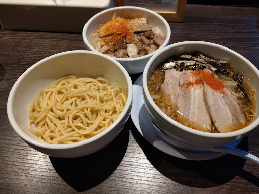 久しぶりに訪問、平日14:00過ぎです。 つけ麺、鰹のほうを注文。 普段はバイトとのお喋りが止まらない店主も、今日はバイトがいないので? 大人しい…愛想が悪い。
