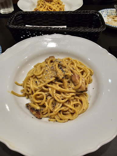 My friend and I just happened to chance at this restaurant. The staff was very friendly and attentive. It had a unique atmosphere to the place which gives it life. I ordered their carbonara and it was honestly one of the best I've had. A normal carbonara would just have pecorino, guanchale and pepper, and what you get there is very close to the original. The cheese They used is accurate. They used thick cut bacon which gives it the same amount of saltiness, and they added a pinch of garlic flakes as well to give it a different dimension of flavour and depth. Tiramisu was also great, the lady finger soaked in coffee is what you'd get from a decent trattoria. Would visit here again if I'm ever...
