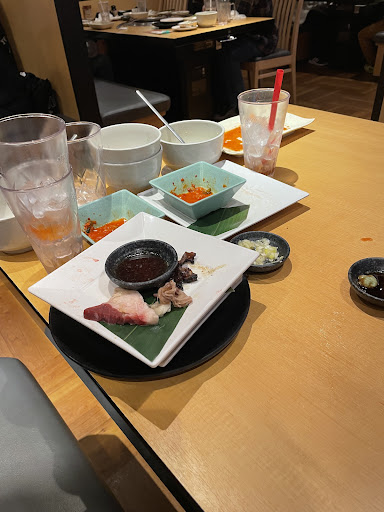 Read more日曜日の16時半に受付をし20数組待ち。 しばらく外で待ち店内のEPARKを見ると呼び出し済みのところに自分の番号が。 携帯で呼んだと言われたが着信なし。 店内にいないとどんどん後に回される。 なのに店内の待つ場所はかなり狭い。 店内の席数も思ったよりも少なくこれは待ちが増える原因のひとつかと。 注文はタッチパネル。 これがまた反応が鈍くストレスになる。 注文はまとめて6つまでしか頼めない。 配膳ロボットが1台ありました。が店内狭くロボットも人間も困ってました。 肝心の料理は、うーーん。 プレミアムコースにしました。 厚切り牛タンはまあまあ。 ハラミは血生臭さが残っていて焼肉屋で食べるレベルではない。 タレ、ドレッシング類がかけられすぎてて味が濃い。ご飯は堅めで塊がある。 デザートも安っぽい味。 といった感じで非常に残念でした。 店員さんは丁寧で気の利く人...