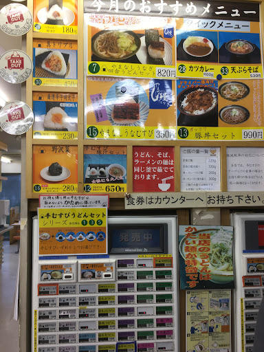 売店側にある券売機(2台あり)で券を購入し、券を厨房に居る店員に渡す。券と引き換えに番号札を貰う。 番号が呼ばれたら取りに行く。