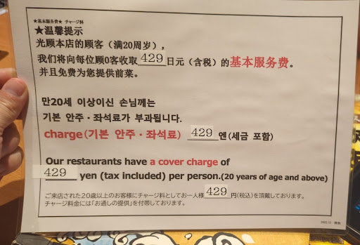 Food was good, but AFTER ORDERING the server came by and presented us with a paper stating that there is a cover charge to eat at their restaurant.. We almost just walked out after seeing we are being charged for just being there. Apparently being a patron to their establishment isn't good enough they have to charge you for the opportunity to even be a patron. It was hot...