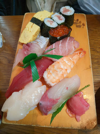 The raw fish were very fresh. We had the Niigiri medium ala carte and the Ochi-don medium. Other than not being able to identify some of the fish, the Niigiri was good. The Ochi-don consists of rice, diced raw fish, diced natto, and a raw egg. It may look gross to the uninitiated, but it's tasty. There's always soup to accompany, and the soup always has a prawn head and plenty of radish (daikon) strips. The Ochi-don was a set, and the set includes some salad. A glass of iced water is provided to each person. A satisfying meal. We came for late lunch (2 pm) on a Sat and there was nobody else until their regular customer arrived for her...