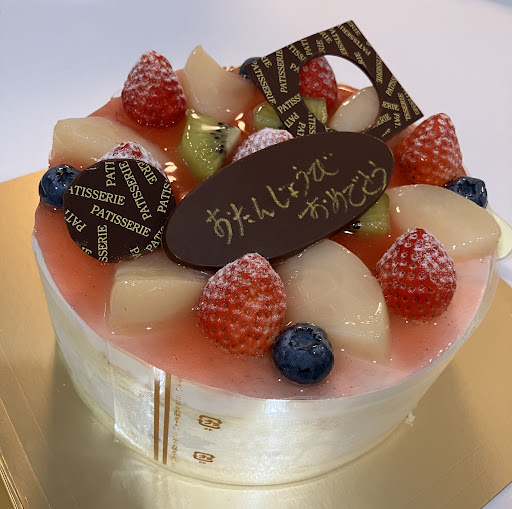 「どんなケーキがよろしいですか?」と相談にのってくださり、「2歳の子どもの誕生日で…」とお伝えすると、「タルトよりババロアや季節のフルーツのほうが食べやすいかも知れませんね。桃のピューレをババロアに混ぜるのもおすすめです」と具体的なご提案をいただき、イメージしやすくとても安心できました。メッセージプレートもつけていただきました。 サイズも、大人もしっかり食べたいことをお伝えして、6号を勧めていただきました。