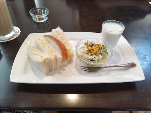 Read moreモーニングで伺いました。 入口のドアが中が見えないドアなので、入りにくいです。 ウエイトレスのおばさまが、あんまり愛想良くなかった。常連にはいいのでしょうね。 店内はお庭?が下半分見える感じは良かった。 でもほとんどの窓がスクリーン下ろしていて、閉鎖的です。閉店してるかと思いました。 コーヒー450円安いです。が、薄い。 家のインスタントより、劣る…。 ここは喫茶店ではなかったのか?? モーニングはBセットのたまごサンドにしました。 立てては切れないでしょう、という薄さのパンにたまごが挟まっています。 マスタードが効いていて良かったが、パンはイマイチ…。 喫茶店てパンが美味しいと思っていた。 モーニングについてくるバナナジュースに期待しましたが、ぬるく、うーん…フレッシュなのかもしれないが、薄めすぎじゃない?モーニングに付いてくるから飲むけど、バナナジュースで頼んでこれが出てきたら、ガッカリです。 コーヒーが美味しくない喫茶店は初めてです。が、値段が安いのでギリ☆2。 なんでも...