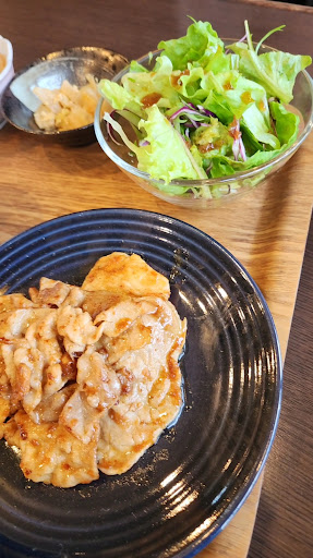 Cランチ 生姜焼き フォーション特製ダレで一気にライスを頂く。 ランチのライスはどんぶりなので男性の大人でもいっぱいになりますね😋