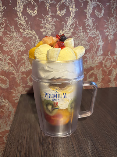 全国展開しているカフェレストラン 今日は尾張旭市にある店舗を訪問 店内は、バリ島のリゾートのような雰囲気を味わえます インスタで甘いものを爆食する方の投稿を見ていたら、私も無性に甘いものを爆食したくなり、相撲レスラーパフェ狙いで1人で行きました 器は、なんとビールのピッチャー🍺 そのピッチャーから溢れんばかりのフルーツやアイス、ソフトクリームがもりもり🤣 バナナ、ベリー、オレンジ、グレープフルーツが上に乗っていて、中にはキウイ、みかん、桃、いちごが入っていて、アイスもバニラ、チョコ、ストロベリーと色んな味が楽しめます😋 ただ、昔はコーンフレークとかチュロスもあったようですが、昨今の物価上昇のせいか今回は入っておらず、とにかくソフトクリームがてんこ盛りに入っており、途中からはアイスとソフトクリームで体が冷えてしまいました😰 ドリンクバーのホットコーヒーを何度もおかわりして、なんとか寒さを凌ぎつつ、約25分で完食! 味は良かったですが、とにかく体が冷えてしますので、まぁ見ればわかりますが、1人ではなく数人で...