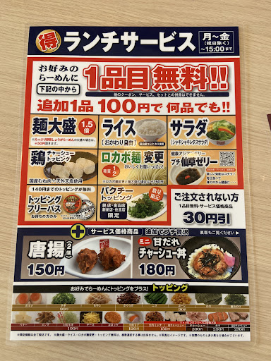 Read more久しぶりに来たら30円値上げの案内。 値上げ前に来られてラッキーといつものねぎラーメン醤油味を注文。ランチサービスのライスもお願いしました。 13時30分頃に行ったので来店客もまばらでした。ラーメンが届き一口目でぬるい。いや、熱くないと言う方が正しいかな。 それからいつもレンゲと一緒に穴の空いたレンゲもついていたけどそれが無かった。 丼の底に沈んだひき肉を拾い集めるのに重宝してたのに。 値段が上がるのは仕方ないけどサービスの質が下がるのはいかがなものか。 改善されてることを期待してまた来週同じくらいの時間に食べに行きます。