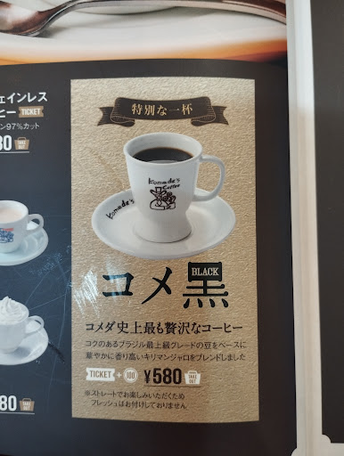 メニューを見ずに、ホットコーヒーの種類を尋ねると、『コメダブレンド』と『コメ黒』というコーヒーがプラス100円であるとの事。