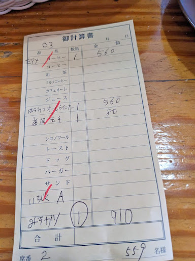 二度と行きません コメダが好きで週1で通っています ここには3回ほどしか来たことがなくあまり来たいとは思っておりませんでした 4回目ですが妻と第3子と来店、コーヒーのでらたっぷり(モーニング)、カツパンを注文しました 店内混んでおらずカツパン到着まで35分 その直前にモーニングとコーヒーが到着(先におねがいしますと伝えたにもかかわらず) コーヒーのコップの外側にクリームが3箇所付着 洗ってあるのか疑問です、その時点でテンションが下がったのですがカツパンをみてビックリしました まずあげすぎで色が変色している パンが乾燥してしまっているのか異常に硬い ある程度の美味しさはありましたがコーヒーのカップの不衛生さと他店舗とのクオリティの差が激しすぎて(調理なので仕方ないところはあるがクオリティが低すぎる)もう二度と行かないとこうと思いました 店員さんをすみませんと呼んでも聞こえないのか何度も呼ばなくては行けない(店内は狭い) ご年配の方が多いのでそういうところは気を配る必要がない店舗立地なのかもしれません(ご年配が多いのは静かな方たち、子供に対して優しい方々なので全く気にならない) 妻はこんなものなのかな?と言っていましたがあまりコメダにこないので一定のクオリティのカツパンを食べたことがないのでこれはカツパンじゃない、と伝えました モーニングのトーストは美味しくいただきました(トーストが美味しくないわけが無いですが) 最低限度の調理、衛生のクオリティを求めるのであ...