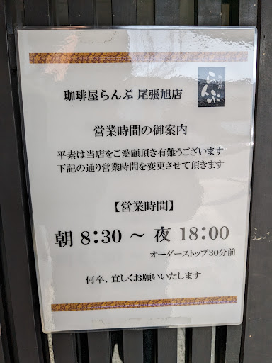 Read more初めて入りました。ランチの後で…スタッフのお姉さんも素敵な方で注文も取りやすく、居心地もよく長くいたので新しい氷水も変えてくれました。時間は13時から14時半、5,60代の女性の方が多かったですね。コーヒーゼリーにバニラアイス、生クリーム、そしてシナモン…と小豆にバニラアイスと少しの生クリーム😍 らんぷさんは、他店さんと建て方や雰囲気も同じなのでいつも落ち着きます。子供の賑やかさはない落ち着ける場所です。 ただ…、トイレの前が喫煙席スペースなのかタバコの煙で臭いと煙ですごかった…もっと...
