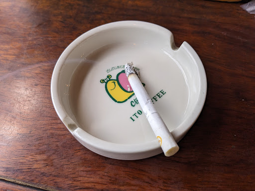 瀬戸街道沿いにそびえる昭和感満載なお店☕ すっかり少なくなった喫煙可のタバコ吸い放題なお店です🚬😁 駐車場🅿は店前と店横にでで〜んとあるんで、運転下手っぴなオイラでも安心して駐車できました🚙 喫煙可🚬の喫茶店☕をあちこち巡ってると、おんなじ灰皿をよく見かけてたんだけど、今日よく見てみたらイトウコーヒーの灰皿だった🚬 早速タバコを吸おうと、ライターに手をかけるとライターのガスが無くてアタフタしてたら、お店のおばちゃんがライターを貸してくれました🥰 昭和感満載あるあるで麻雀ゲームのテーブル台があったり、おっちゃん大好物のアツアツ布おしぼりが出てきたりと大好きな雰囲気でした😍 土曜日朝に来店したケド💦続々とおっちゃん一人客が来店🚶🚶🚶ゆったりとタバコ🚬が吸えて落ち着ける雰囲気を求めておっちゃんが続々とやってくるおっちゃんホ...