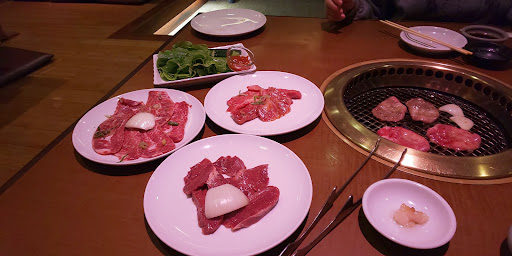 5900円のコースを頼んだのですが、それなりにボリュームもありお肉は美味しかったです。 ただ皆さんも口コミ書かれてますが、 接客が底辺だと思いました。大人6人いたのですが、全員口を揃えて「あれはないね、クレームレベル」と言っていました。 まず大人6人子供2人で通された席はゆったりできるサイズではない席でした。 それはしょうがないとして、その席に乗らないくらい次から次に運ばれてくる肉。 店員が置き場所がないのに両手で肉皿を持ったまま、早く受け取れよと言わんばかりな目つきで何も言わずに突っ立ってます。 机には乗らないので仕方なく床に並べてましたが、さすがに床ににも置けなくなったのでストップしてもらいました。 また、そんなガチャガチャな机だからなのか店員から肉を受け取る際に、焼酎をこぼしてしまいました。 すると店員はその事に対して大丈夫ですかや、拭くもの用意してくれるそぶりもなく、 ただ無言で早く取れよの目つきで肉皿両手に突っ立ってました。 (正直、接客云々ではなくこんな人間いるんだ、、と驚愕でした) おしぼりを頼むと、「あ、はい。とりあえずお肉受け取ってもらっていいですか」と。