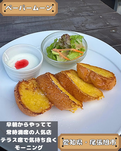Read more愛知県森林公園の入口向かい側からちょい斜に細い道を入った所に可愛ゆいカフェがあるんよφ(..)その名は「ハネムーン」(/o\)うんにゃ「スーパームーン」(/o\)ちゃうちゃう【ペーパームーン】さん家だどんo(*⌒O⌒)b本日はモーニングタイムにシンクロしてみたよ(゜∇^d)!!