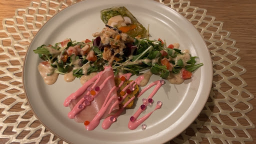 ご夫婦で経営してるレストラン。 完全予約制なのかな? 事前に電話で席だけ予約しました。 外観からは営業中なのかどうかすら分からないですが、中に入ると別空間みたいな感じで、とっても雰囲気が良くオシャレで居心地のいい空間が作られていました。 女性が好きそうな可愛い内装ですが、男性が居心地悪くなるほどブリブリではないです。