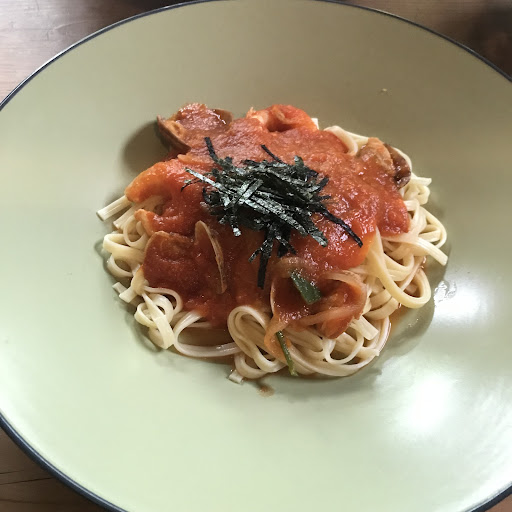 デザートも魅力でしたがら、クルミアレルギーなので断念して、トマトのパスタとフルーツティーにしました。 トマトのパスタは初めていただく麺でしたが、トマトの酸味が生かされてました。 感動したのは、フルーツティー。とっても沢山の鮮やかな果物がたっぷり。缶詰ではなくて新鮮なフルーツだからこそ、それぞれのフルーツの旨みや香りがありました。