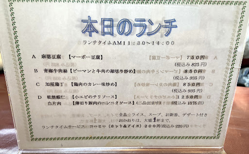 2023.10.28訪問 ついに値上げとなってしまいました(泣) 麻婆豆腐ランチ825円(税込) 美味しさに変わりはありません。 ご馳走様でした(^^)