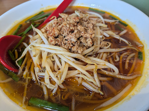 まずは台湾辛味麺(750円)を。 どんなのかというと、醤油ベースのあっさりスープにラー油。シャキシャキのもやしとちょいと辛味のあるひき肉。 そんなに辛くないし、ボリュームも普通でした。刀削麺に変更(150円)も出来るみたいなんで、そっちの方が食べ応えありそうかも。