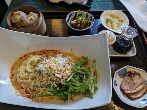 メインの冷やし担々麺は、ゴマ味の日本式。麺は細めで麻辣は控えめに。食べやすく調整されています。