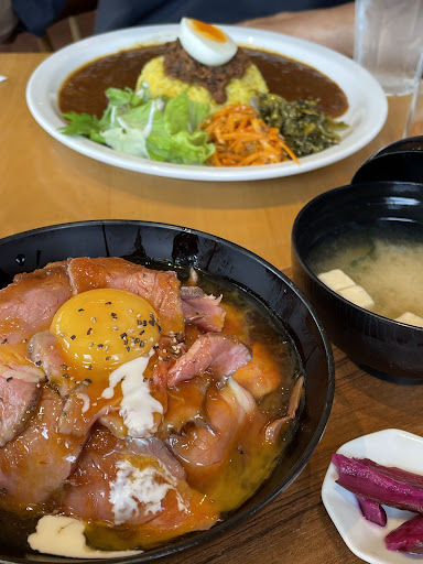 Read more関東旅行から帰路の高速道路での昼ご飯を足柄サービスエリアで食べようと言うことになりました。 フードコートへ行ったものの旅の疲れが出ていて、座るところを探したり、セルフサービスで料理を運んだりするのが億劫で、ゆったりと食事したい気分に。 ここは店の入り口から見える中の家具や調度品がとても落ち着いてて、広いし、スタッフさんもキビキビと動いていて雰囲気に惹かれて入りました。 私はローストビーフ丼。並と大盛りと特盛が選べて、並をチョイス。女性なら充分だと思います。肉は外国産でしたが、ご飯の上にびっしり敷き詰められて満足感はありました。タレも美味しかったです。 連れ2人はカレーとエビドリア。 エビドリアは味見させてもらいました。可もなく不可もなくという味でした。 料理は全体的にファミリーレストランの味、という気がします。