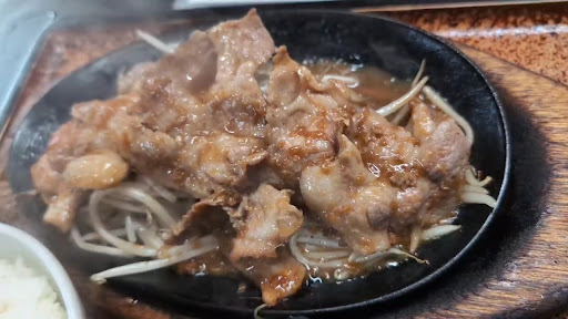 豚の生姜焼き定食を頼んで、味はそんなに期待していなかったのですが、 なんと、鉄板で出て来ました。目の前でジュウジュウいうてます。 ほおばると、ホントにあっつあつで、ホカホカごはんと交互に箸が進みます!