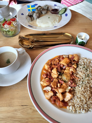 Read more休日のランチに訪問。 店の前に3、4台駐車スペースと第二駐車場らしき看板もみかけました。 本格的なスウェーデン料理が食べられます。 ショットプラール、空飛ぶヤコブさんを注文。 ショットプラールはスウェーデンミートボールで、マッシュポテトが主食。ミートボールにジャムで味変。 空飛ぶヤコブさんは鶏肉とバナナにナッツが入った煮込み料理に、スウェーデンだと当然日本米なわけはなく、タイ米になるのでリアルな再現。 どちらも好みで美味しい!これよこれ!! さらに、北欧ヴィンテージ食器にワクワクしました! ロールストランドにグスタフスベリ、、、店内の飾り棚の小物類もスウェーデンのもの。 すごく可愛いい! スタッフの男性が穏やかな接客でよかった。 こんな素敵なお店が近所にある方が羨ましいです。 ケーキまで...