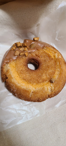 入店すると元気な店員さんがお声掛け下さりかわいいドーナッツを購入。沢山の種類があるので目移りしてしまいました。 ハロウィン時期だからか店内もハロウィン仕様で店内の写真を撮らせて頂きました。 今回数種類のドーナッツとスコーンを購入しましたが、オススメはなんと言っても生ドーナッツ!!甘そうに見えてクリームが思っていた程甘くない。ふわふわで口の中でとろけてしまうような生地。 本当に美味しかった!! 入れて貰った紙袋も1枚1枚違っており手書きなのかかわいすぎて保管しておきたいくらいでした。