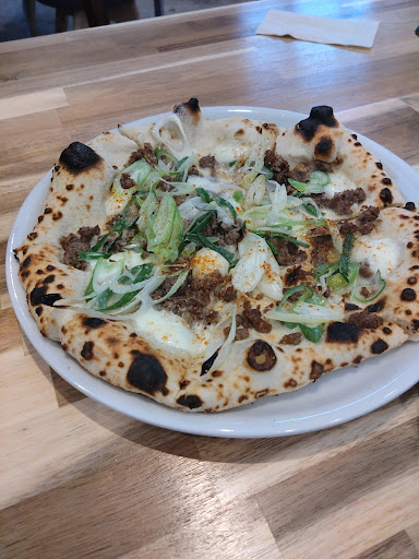 Read more整体やラーメン屋さんの並びの一番奥端にありました 中はおしゃれで雰囲気は良かった ランチに行きました ランチメニューがあってパスタ2品とピザメニュー ランチセットで+980円でサラダや前菜、デザートドリンク付き 1人約2500円くらいですかね パスタはもう少しメニューあると良いかな トマト系パスタがあったらと思いました ピザは長ねぎともち豚のピザ 味は美味しかったけど、生地がも少しもちもちしてたら、、、と思いましたが、釜で焼いてるから香ばしくてそれが旨みがありました