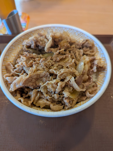 Read more普段は近寄らない場所なんだけど 誰ですか?牛丼が国民食だなんていう方は?非国民でーす!てな訳で朝食だけの評価をしますね ちょっと前三社のコスパなんて記事があり食べてみたいなーみたいなで食べてみました ずいぶんと値段が安いものからちょっとだけ牛丼食べた方がいいんじゃねまでの値段設定でした 今回は玉子かけごはんがメインの小鉢を付けたセット頼みました 味は普通に美味しい 玉子専用の醤油も付いてくるんですね ポテトサラダはせめて胡瓜ぐらいはいれてほしいけどなー 玉子をご飯にかけちゃうとのりがどうしても余っちょうけどみなさんはどーやって食べてはるか聞いてみたいです ご飯は少なくしても安くなります 焼魚もセット出来ますね色々違うセットあるので機会があれば試してみたいです 店はカウンターとテーブル席があって 家族でも入れるかな 朝はキャパがいっぱいっぱいかな...