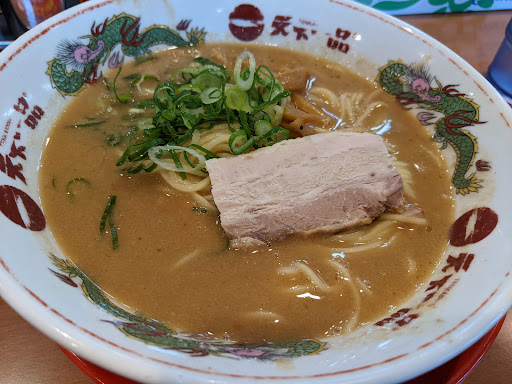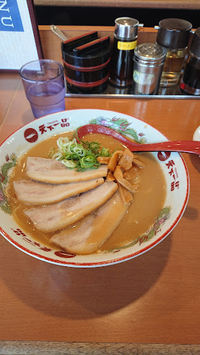 ラーメン:良くも悪くも天一のラーメン。チャーシューが立派になってるのは嬉しい。 チャーハンにも同じチャーシューが使われているみたいで良かった。塩気は少なめだがチャーシューの味で補完してる様子。 サービス:水に違和感。我慢すればいいが何か鼻につく。 にんにく薬味が大盛りか特盛を聞かれた。大盛りを頼んだが小さじ1くらいの量。 店員の応答が悪い。おばちゃん店員で耳が聞こえづらいのか返事をしないだけなのかんからないがそれなりに叫んでもレスがない。厨房がそれなりにうるさく聞こえたのでチャイムを設置してほしい。それでも呼んだときの店員の返事に覇気がないのはチェーン店としてどうなのか。 店内:フランチャイズなのか街の中華店が居抜したのを使ってるのか定食屋な印象。それなり...