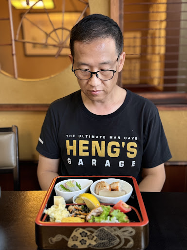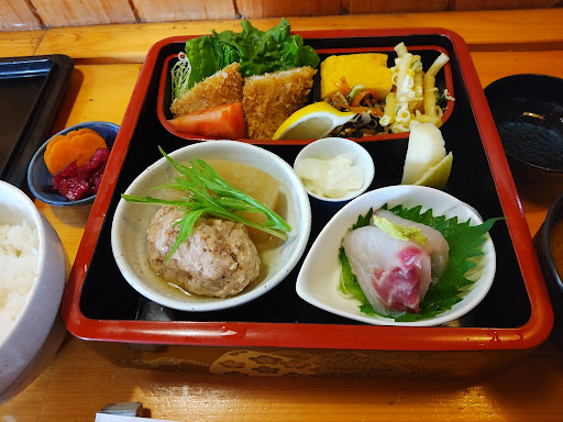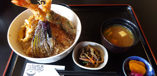 Read more以前より昼時の店前の駐車場が混んでいる日本料理店のランチが、気になっていた。店名から検索するとランチメニューが天丼と松花堂弁当の2種類だけであるのを知った。美味しい天丼を求めて、60歳代夫婦2組で訪問した。ランチメニューに数量限定があるか事前に12:50に入店するのでと、電話で問合せすると人数を聞かれ、4人の席予約をしました。その場での注文で良いとのこと。入店後、4人掛けのテーブル席に案内されました。箸置きに箸袋に入った割り箸が4つ置かれており、お茶と手拭きが出され、直ぐに天丼と弁当を2つずつ注文しました。待つ間に箸袋のデザインが皆違うことに気付き、ちょっとした話しのネタになり、心がホッコリしました。程なく提供され、天丼を食しましたが、海老天2本をメインにしっかりとした衣に嫌なべとべと感の無いタレの掛かった天麩羅がご飯の上に盛られ、見た目も味も素晴らしいです。ご飯の量も満足。ま...