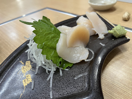 Read moreお寿司盛り合わせ、ゲソの塩焼き、山芋短冊、貝柱の造りを注文。 まずきたのは貝柱のお造り。 提供スピードがめっちゃ早くてびっくりしました^_^ 甘くて口の中でとろけて最高でした✨