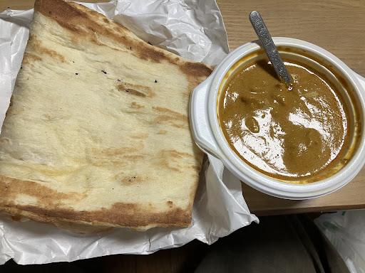 大洲に新しく開店したインド料理屋さん。テイクアウトで利用しました。お客さんはご夫婦らしき男女2人だけでした。私はBランチ…【チキンカレー+ナン】1,026円を注文しました。「辛いのが好きです」と言うと、「じゃ、大辛で大丈夫」と言われ、大辛にしました。待っている間に「スープをどうぞ」と店員さんが持って来られました。オレンジジュースに牛乳を混ぜたような色の汁に青ネギが浮いてる…なんの出汁だかよくわからない、でも優しい味の温かいスープをいただきました。5分ほど待ったでしょうか、、カレーとナンが出来上がり、お支払いしました。後から、セットにサラダが付かないことを知りました。食べた感じ、私としてはあともうちょいかなぁ…という印象です。ナンが甘めだからか、カレーはどちらかというとサッパリ系でした。チキンはゴロゴロ入っています。辛さは大辛で 私にはちょうど良かったです。何より このお値段のカレーランチでサラダとドリンクが付かないのは、ちょっとコスパがいいとは言い難いかなぁ…と思います。メニュー表には「スープ、ドリンク、サラダは付きません」とありますが、スープはサービスだったのかな? スープよりサラダが付くと嬉しいです。...