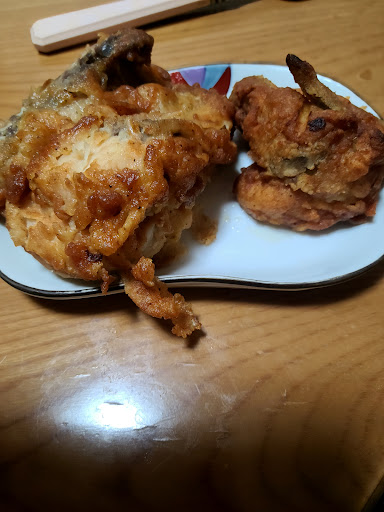 Read moreケンタッキー2ピースを無料で貰えるのがあり頼んだら小ぶりと大きいのに。 1人だからいいけど男2人とか子供なら喧嘩になるなあと。 こういうのって客に一言ないのかな? バランスがいいようにしますか?とか1つは大きいのにしますか?とかあ...