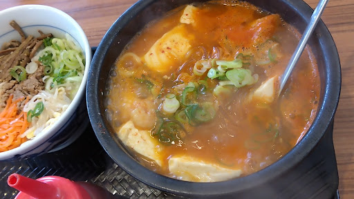 パチンコ屋さんの前に有るので入り辛かったんですが美味しいし色々なメニューがあるみたいなので次々挑戦したいと思いました ラーメンと変わらない値段でボリューム満天の韓国料理が楽しめそうです、今度は写真UPします 定食もボリュームある割には¥1000円以内で食べれるし今度はスンドゥブのセットも食べてみたいです、安くて旨い韓国料理が出来てリーズナブルな料金で食べれてハマリそうです(笑) 今まで何でこういう本格的な韓国料理店が無かったのか?と思いました、ビビンバも石焼ビビンバも冷麺も好きだし、これから常連に成りそうです(笑)
