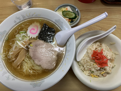 ラーメンはこれぞ昭和の中華そばという風貌で豚骨と節の旨味を感じる優しいスープにちょっと緩めの細麺が非常にマッチしていて、個人的にかなり好みのラーメンでした。 半チャーハンは作り置き?しっとりタイプで味は濃い目です。