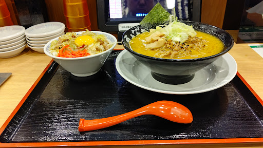 Read more初来訪です。 正月明けの寒い夜に来店。 店内はカウンター6席✕2(12席)、テーブル4席✕11で最大56人着席できる。 駐車場は、利府ペアガーデン内なので相応に駐車可能。 メニューは、カウンターなら各席ごと、テーブルは1台ずつタッチパネルの端末が置かれそこで選ぶ。 今回は、完全には見えないが、厨房を望めるカウンター席に案内された。 夜間に入店したからか、ディナー(昼間は分からない)と表示され、期間限定、醤油ベースもあったが味噌ベースメニューが多かった。 餃子は、ダブルで頼んだが可もなく不可もなしの普通で良かったのは、小皿に汚れないように蓋がしてあって衛生的だった。 他には、お子様メニュー、サイドメニューは焼餃子(6個・ダブル12個・トリプル18個)、黒半チャーハン、ザクカラ:(4個・8個・12個)、ドリンクメニュー(ジョッキジュース;ウーロン茶、コカ・コーラ、レモンスカッシュ、カルピスソーダ、カルピス)、アルコール(ビール:生・瓶、ジョッキハイ:ウーロン・レモン・カルピス、ジョッキサワー:レモン・カルピス、ハイボール、日本酒:奥の松島...
