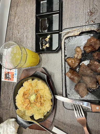 Read more4月27日昼過ぎの空いてる時間に伺いました。 初めてやっぱりステーキに行きましたが、まず来店した際外人の店員2人が入り口を塞ぐように立っておしゃべりをしており、店内に入りたいので「一人です」と言いながら入店したい意志を示しましたが、その店員たちは何も言わずにこちらの顔をジッと見て、しばらくして横に避けました。道があいたので入店しましたがその間「いらっしゃいませ」や、どこの席に座ってくださいなどの言葉は一切なく終始無言でこちらを見ていました。そのため勝手に席に着きましたが、タッチパネルで注文しようとしてもタッチパネルの反応がないためホールで動いていた外人の店員を呼びタッチパネルが反応しない旨を伝えましたが、その店員は持っていたタレ皿と紙エプロンを無言でテーブルに置き、立ち去りました。 その後、しばらくしてタッチパネルは反応するようになりましたが、その後も特にちゃんと注文できるようになったかの確認には誰も来ませんでした。 注文できるようになったので注文いたしましたが、店内のシステムの説明などもなく、不安に思いながらも待っていました。 しばらくして外人の店員が鉄板に乗った肉を持ってきましたが、何の肉で何グラムかなどの説明どころか、一言も発することはなく鉄板をテーブルに置いて去りました。 店内のシステムが良くわからないので、勝手にライスやスープを取って食事をし、退店いたしました。 会計にいた日本人がニコニコしながら愛想よく接してきましたが、こちらを煽ってるようにしか感じませんでした。 もしかしたら、外人の店員だったのでチップを渡さなかったから、不誠実な対応だったのでしょうか? それとも、どこのやっぱりステーキに行ってもこういった接客...