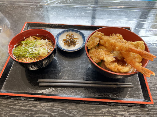 Read moreスーパー内にある小さなフードコートです。 海鮮天丼セット1300円を注文、海鮮丼も魅力的だったが、夏場なので避けた。 フードコートだからあまり期待していなかったが、意外にも美味しかった😆 天丼の天ぷらは、エビ2本、カキ、ホタテ、アナゴ、イカで、 何故かころものないピーマンもトッピングされている😅 お供のめかぶ蕎麦もメチャ美味しかった😆 めかぶのとろみから旨味が出ているのかもしれない。 混んでいたにも関わらず、10分くらいで提供されたのも良かった😄 次回は海鮮丼を食べたい。 帰りにソフトクリーム250円を買ったが、こちらも濃厚な味で美味しかった😆 食後のデ...