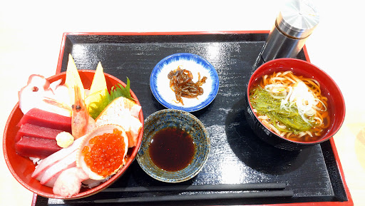 Read more昼過ぎに訪問 海鮮丼を注文しました 5分程度で提供され、待ち時間が少ないのが助かります 丁度店が空いていたのがあるかもしれませんが たしか1300円だったと思いますが、観光地とか行ったらこの値段での提供はかんがえられませんね 質は値段に対して満足 量は男性の食べる方なら物足りないかもしれませんが私は丁度良い 客席が多く無いので混雑すると大変かと思いますが カウンター席もあるのでお一人様も気兼...