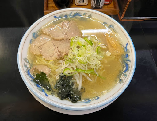動物系主体の素朴な出汁に甘味を引き立たせた塩、そして適度な胡椒で全体を引き締める様には懐かしさが溢れています。 以前に醤油をいただいた際は和の趣きを感じたのですが、今回は魚介の主張は感じられず、使用されているとしても支え程度に鰹ぐらいでしょうか。 特に目立った出汁感はなく、後半にじわっと鶏が染みるぐらいのフラットな味わいです。 プリッとした中細麺がまた目立つようでいながらジャストフィット。その演出に哀愁と郷愁を感じます。 具材では正直いらんかものワカメ、戻しきれていないようなメンマ、でももっとも印象に残ったのはフレッシュなネギで、これは注文が入ってからトントンと刻まれていました。 外観の雰囲気から入り辛そうなところはありますが、一歩踏み込めばそこはパラダイス。きっと馴染めます。このお店が好きになれる人とは仲良くなれそうな気がします。 湖国のノス系としていつまでも健康で頑張ってほしいお...